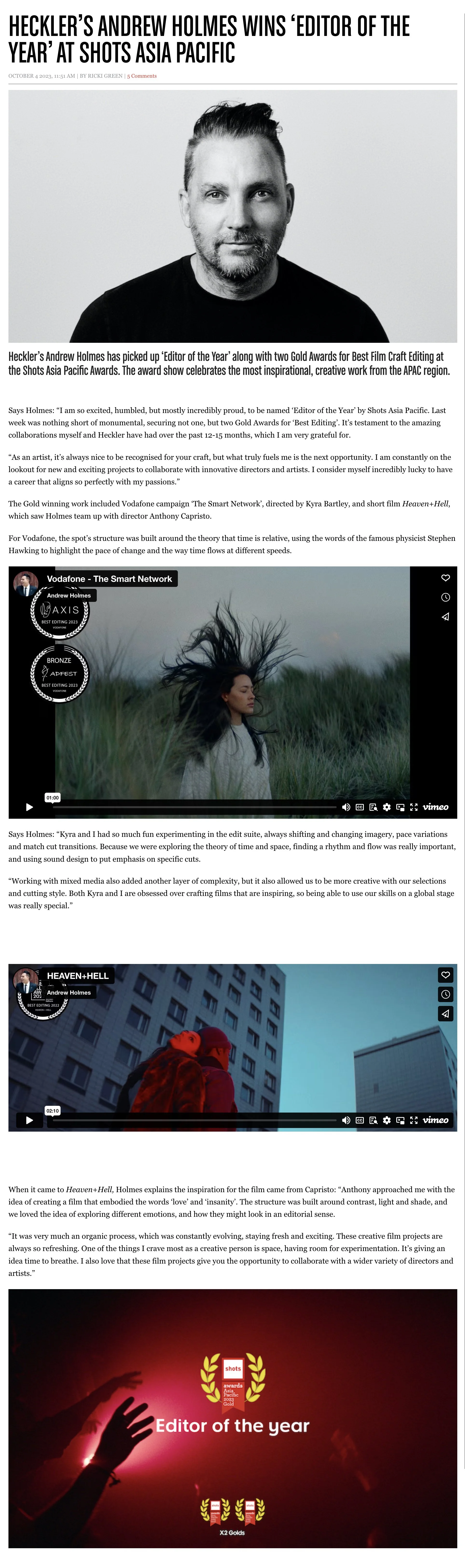 Editor of the year - Shots Awards Asia Pacific